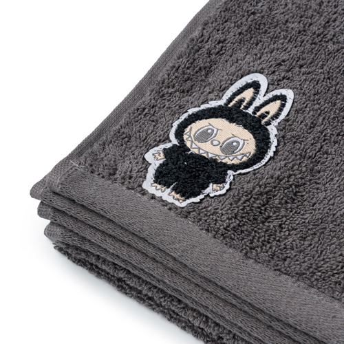 - Labubu logolu yumuşak dokulu pamuk saç havlusu.