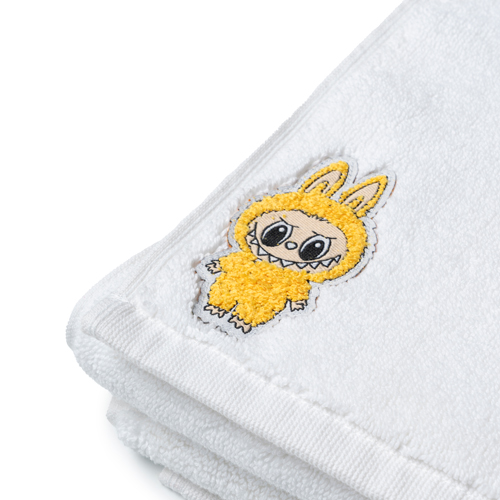 - Labubu logolu yumuşak dokulu pamuk saç havlusu.