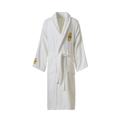 - Labubu logolu yumuşak dokulu pamuk bornoz ve saç havlusu.